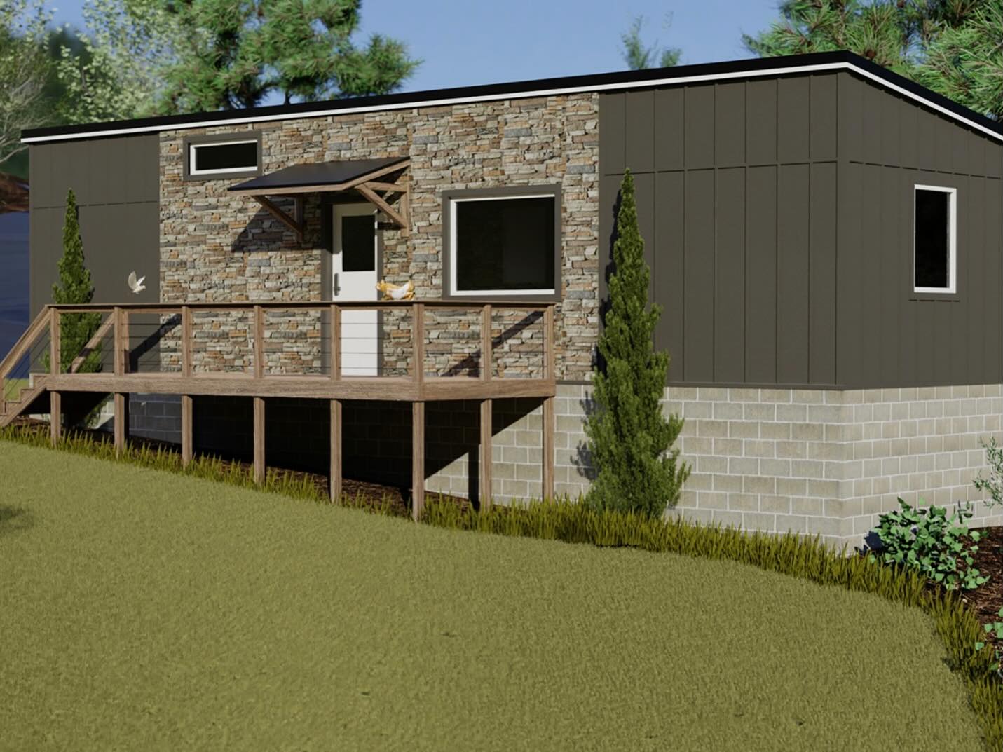 Interim safe sites with wrap-around case management and paths to permanent housing.
